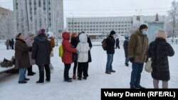 В Архангельске 16 января на акцию в поддержку политика Алексея Навального, который возвращается из Германии в Россию, вышли 15 человек, сообщает корреспондент сайта Север Реалии.