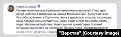 Заканчивая комментарий, женщина пожаловалась губернатору на то, что жители Крапивного оказались брошенными. "А что с нами? Как жить нам? Опять поиски работы, младшего кому оставить для присмотра, пока я на работе? В чужом городе мы никому не нужны…", – написала она.